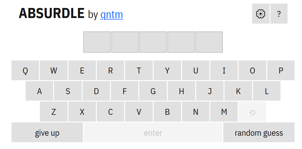 The gameplay is similar to Wordle, except that the game is more so geared towards being adversarial, which means that Absurdle is actively trying to avoid giving you the answer. With each guess, Absurdle reveals as little information as possible, changing the secret word if need be. Other than that, the rules are the same as Wordle's, except you have unlimited guesses. The best possible score in Absurdle is 4 guesses.