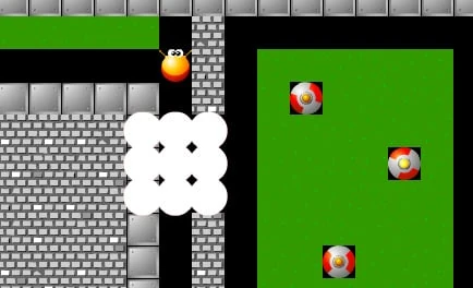 In this game, the player Acno, a little yellow sprite, around a room with goal of getting one or more red orbs into the portal to "energize" it and move to the next level.