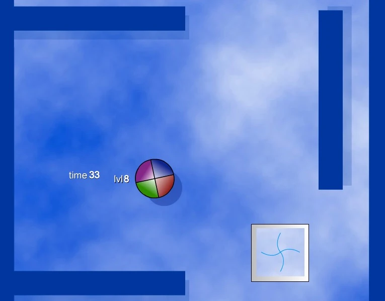 Ball Revamped 3 was split into two parts - Andromeda and Gemini (2005), each having 50 regular levels each, followed by a boss fight. The levels were no longer fixed to a single screen, making them much larger and more explorative in concept. There were new obstacles such as Jellyfish, and powerups were readded, for example, shrink powerups or harmful growth powerups.