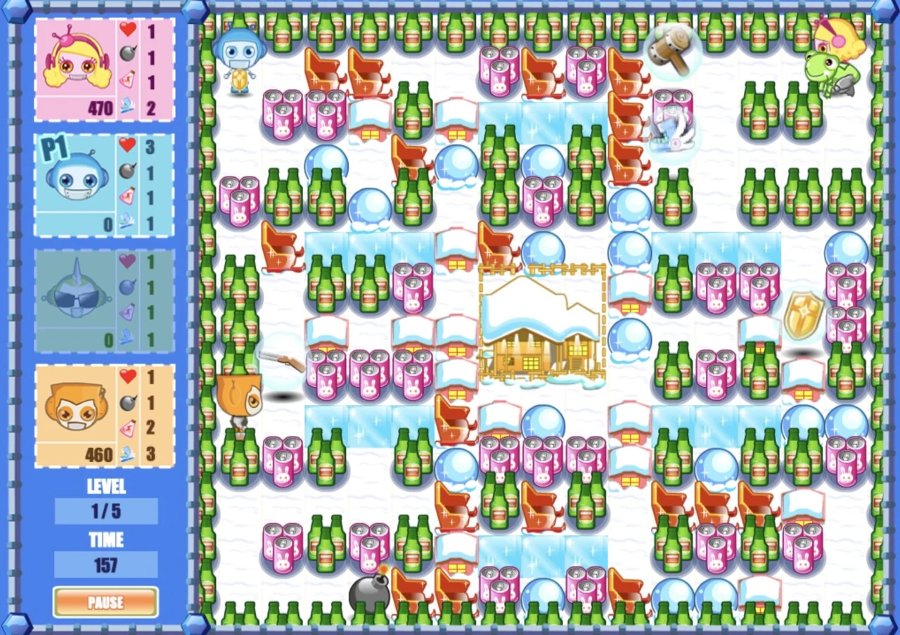 - Players are equipped with bombs as the default weapon.