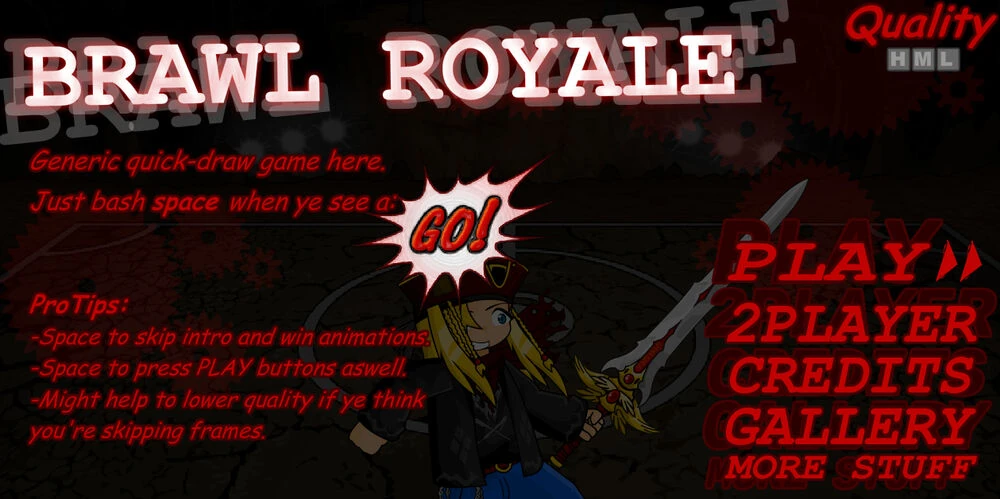 Brawl Royale is a flash game that serves as a precursor to the Epic Battle Fantasy series. This game tests your reflexes by pitting you against an assortment of opponents in a series of quick-draw battles to the death where you have to try to be the first to launch an attack.