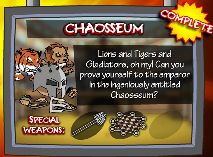 - Description: Lions and Tigers and Gladiators, oh my! Can you prove yourself to the emperor in the ingeniously entitle Chaosseum?