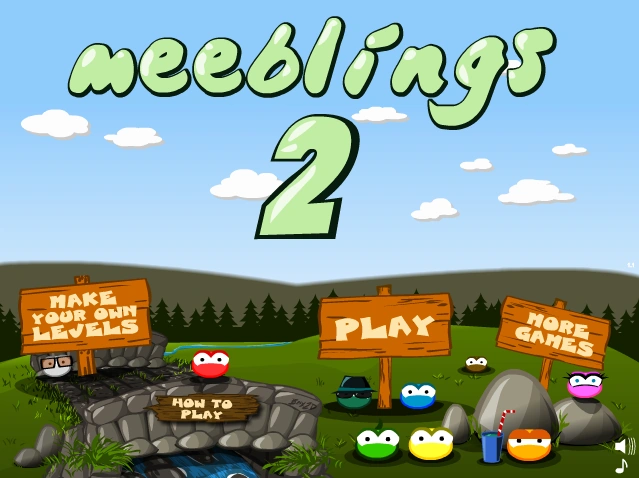 Meeblings 2 is a physics puzzle game developed by Ninja Kiwi as the sequel to Meeblings. Once again, the multicolored creatures known as Meeblings need your help to find their way home using their various talents to navigate through the levels.