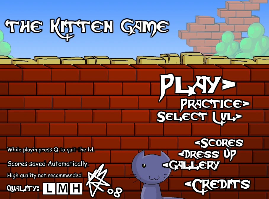 Aside from the main game, The Kitten Game also has a practice mode which is identical to the campaign but with no time limit, as well as a dress-up mode where you, obviously enough, dress up the cats.